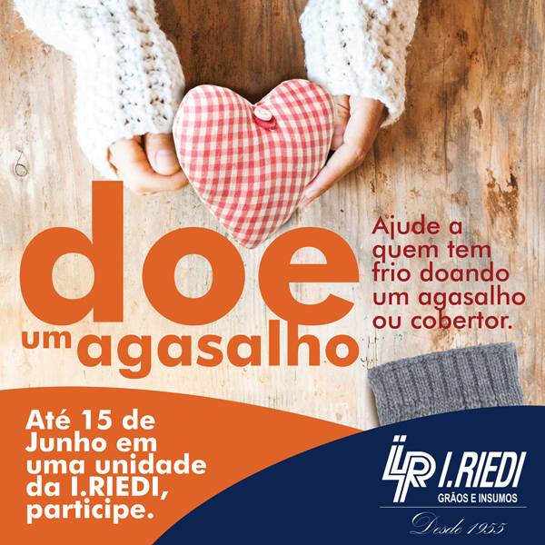"Estamos passando por um momento muito difícil na sociedade. A pandemia causada pelo Covid-19 despertou em nós um sentimento ainda maior e empatia e uma necessidade de ajudar aqueles que precisam", afirmou a diretora presidente da I.RIEDI, Wanda Inês Riedi. Pensando nisso, a empresa irá realizar novamente já tradicional "Campanha do Agasalho", para aquecer um pouco àqueles que irão enfrentar a estação mais fria do ano e não têm condições de comprar roupas quentinhas.
